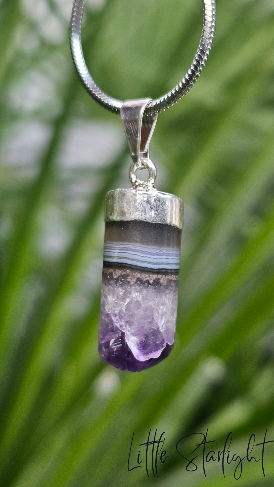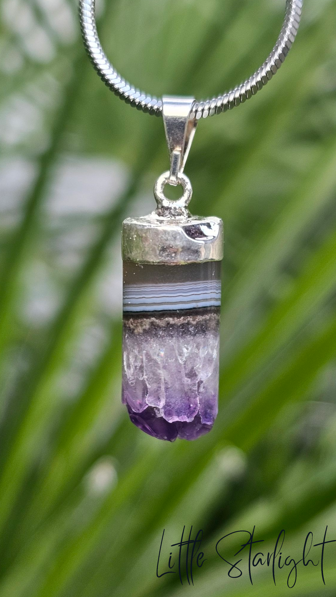 Prachtige agaat met amethist hanger met een brass oogje verguld met zilver