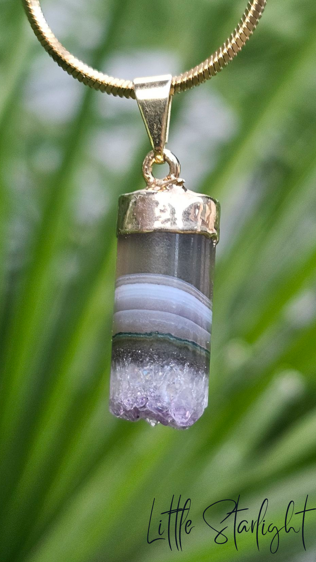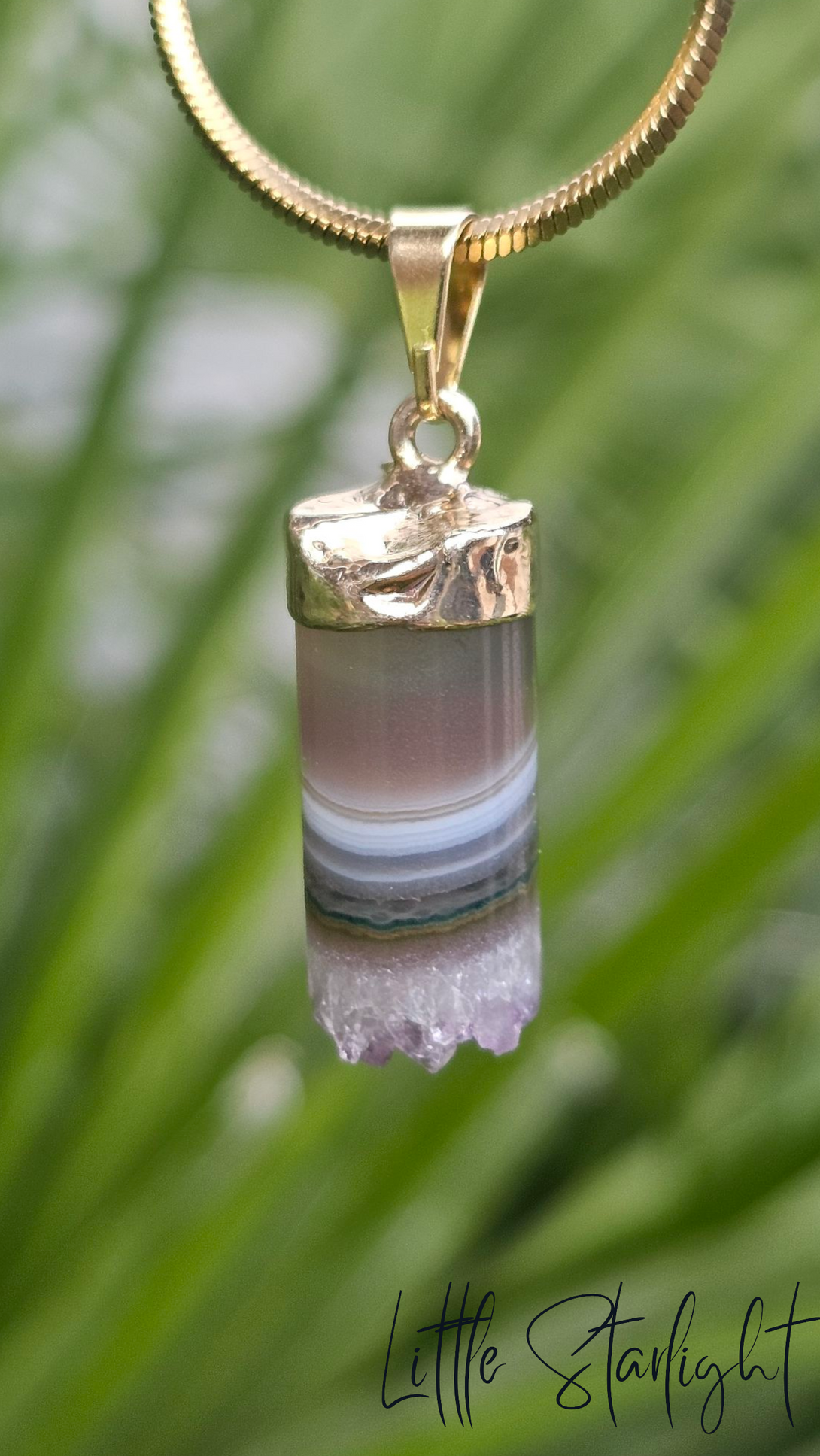 Prachtige agaat met amethist hanger met een brass oogje verguld met goud
