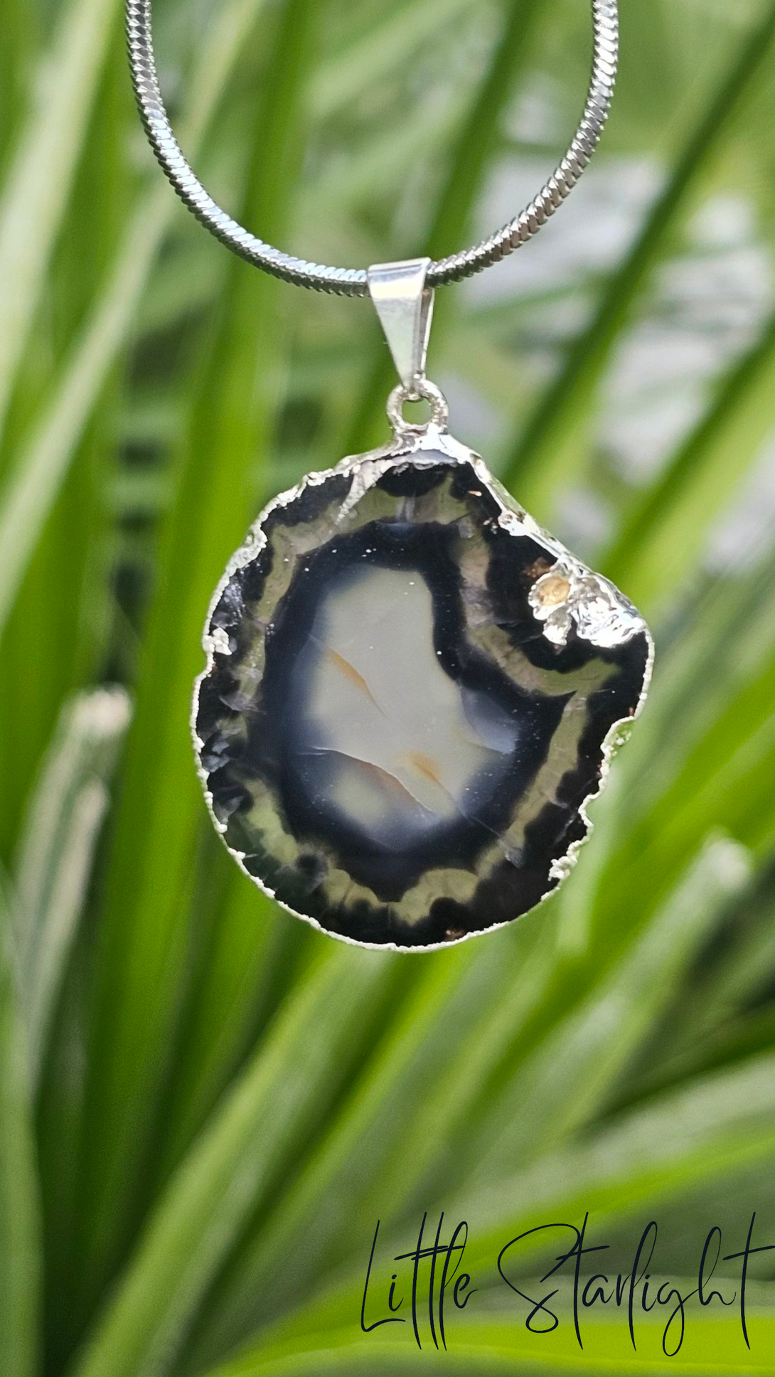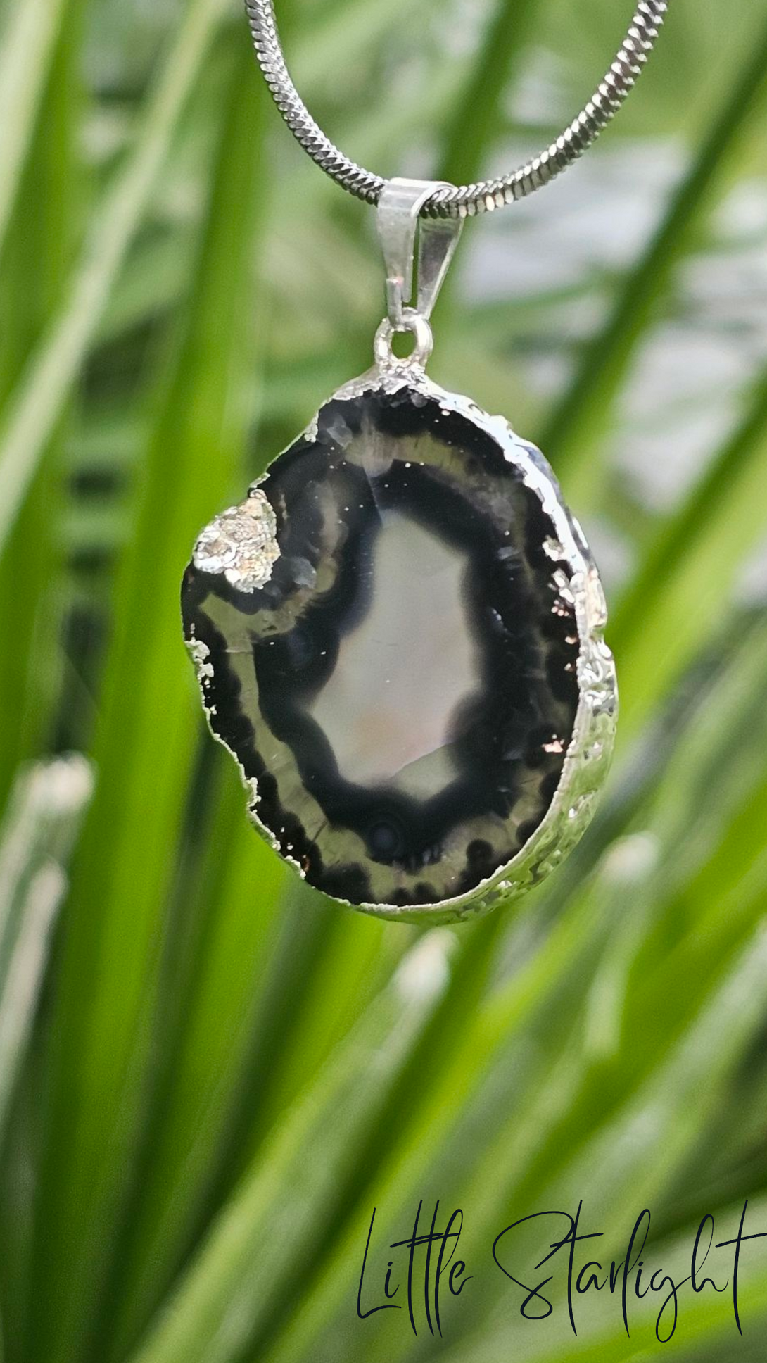 Prachtige agaat hanger met een brass oogje verguld met zilver