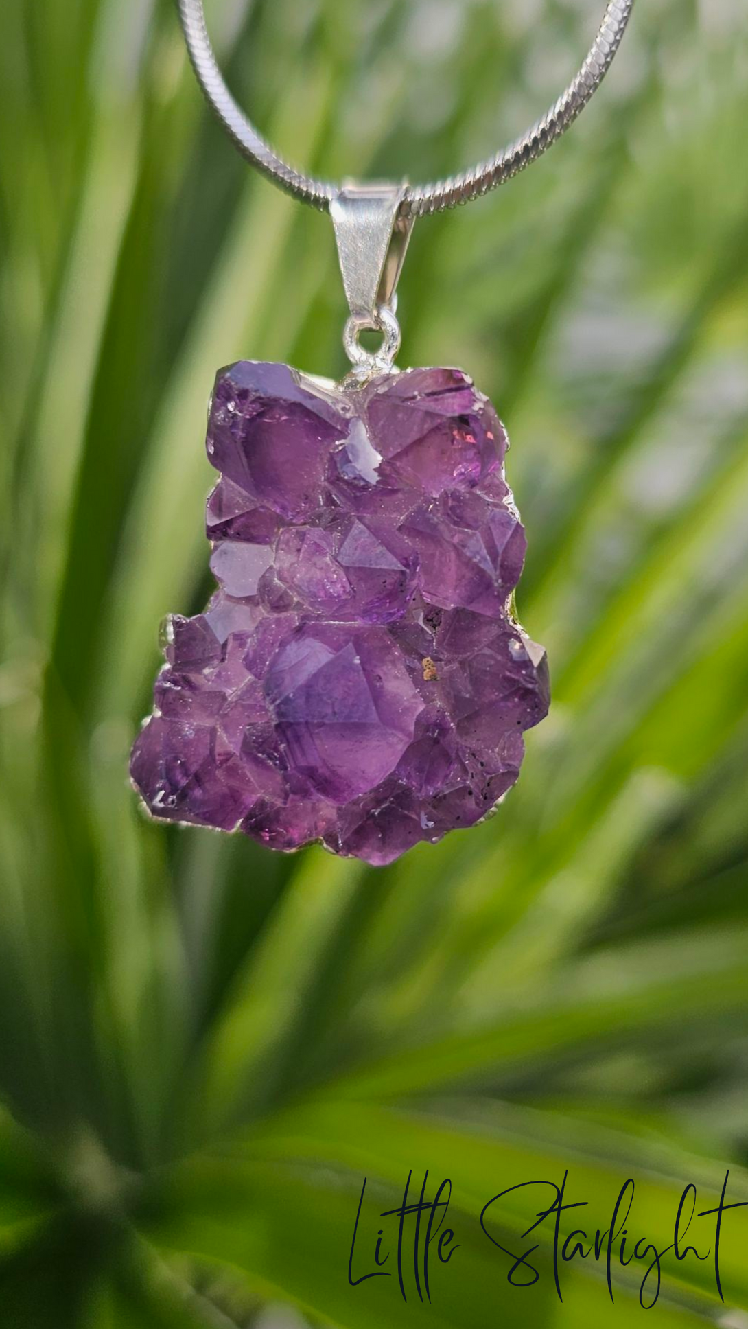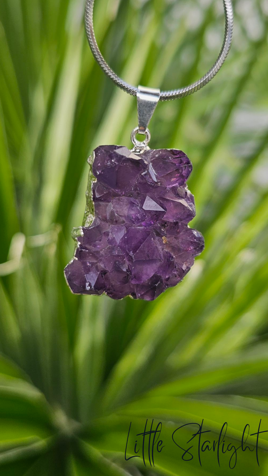 Prachtige amethist hanger met een brass oogje verguld met zilver