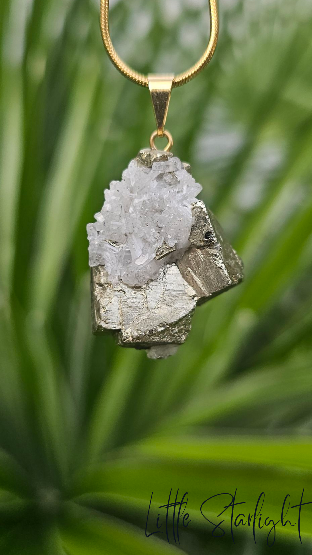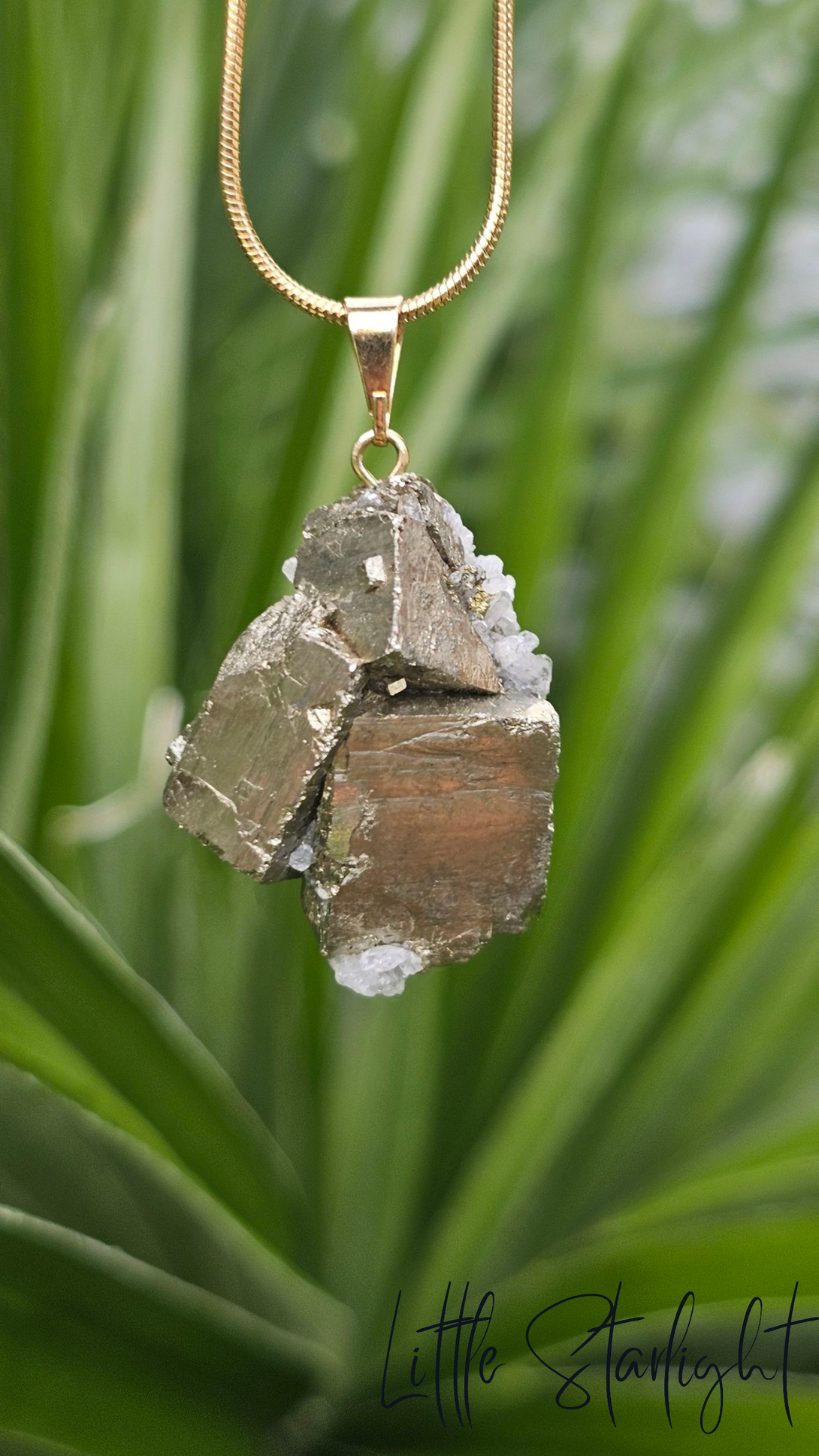 Unieke pyriet uit Peru met een brass oogje verguld met gouden.