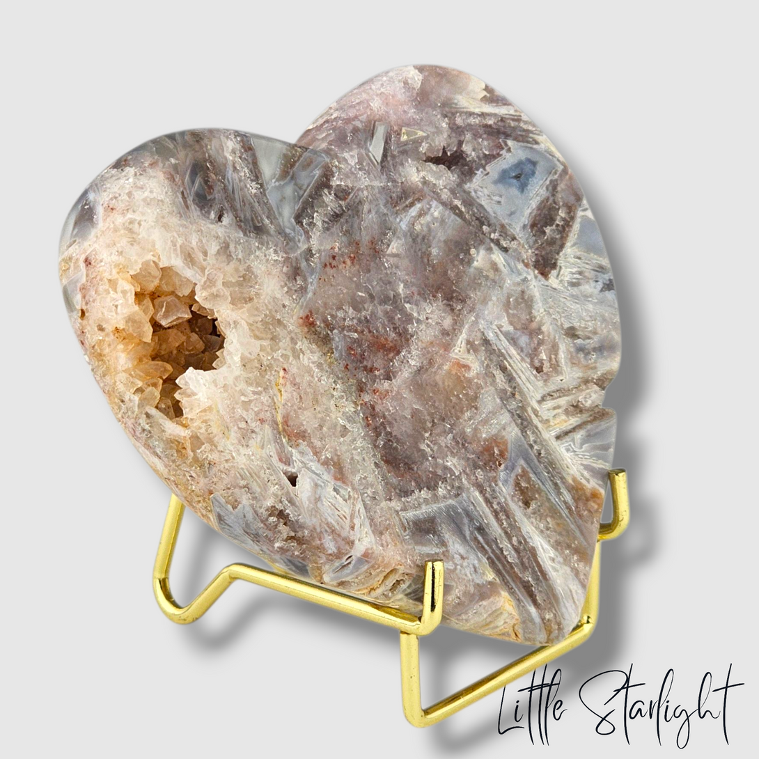Roze amethist is een variant van chalcedoon, afkomstig uit de mijnen van Brazilië. De zachte roze tinten en unieke kristalstructuur maken dit een echte blikvanger. Deze roze amethist hart is van hoge kwaliteit