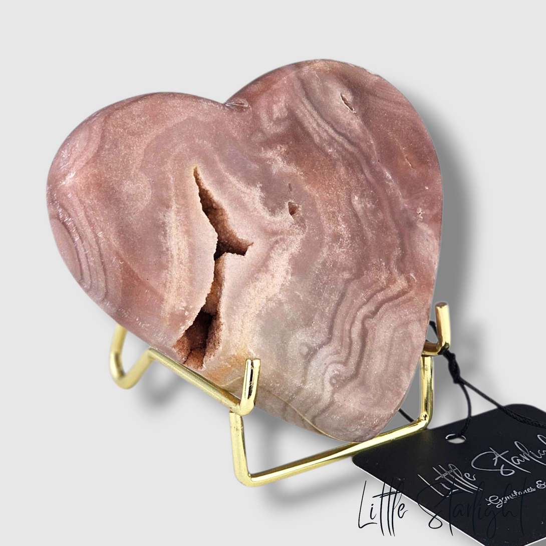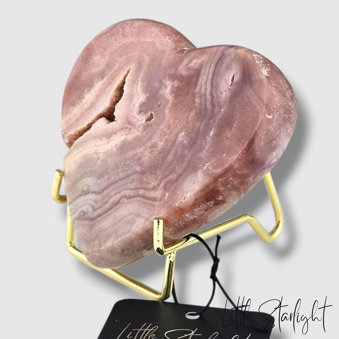 Roze amethist is een variant van chalcedoon, afkomstig uit de mijnen van Brazilië. De zachte roze tinten en unieke kristalstructuur maken dit een echte blikvanger. Deze roze amethist hart is van hoge kwaliteit