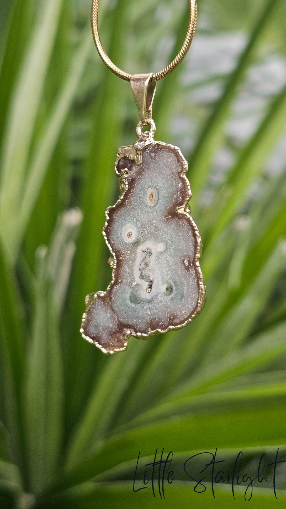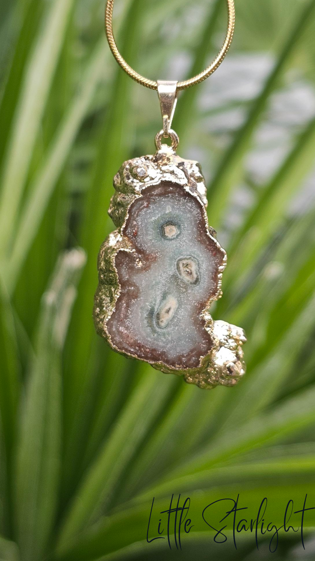 Unieke stalactiet hanger uit Brazilië, afgewerkt met een elegant oogje van brass verguld met goud